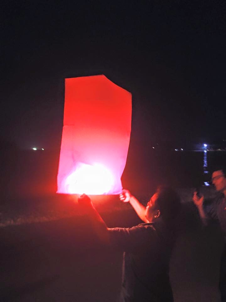 After Christmas dinner, Drew, myself, and Andrew headed to the beach to light a wishing lantern. This is definitely not the most environmentally friendly thing I've done this year, but it was a beautiful memory. Essentially, you buy a lantern from one of the half dozen people selling them on the beach. You light the candle inside and make a wish. Then, you hold the lantern close to the ground as the hot air begins to build up inside. Eventually there is enough hot air to lift the paper lantern off the ground, so you let go and watch your wish float towards the heavens. I actually think what I wished for is coming true as we speak!